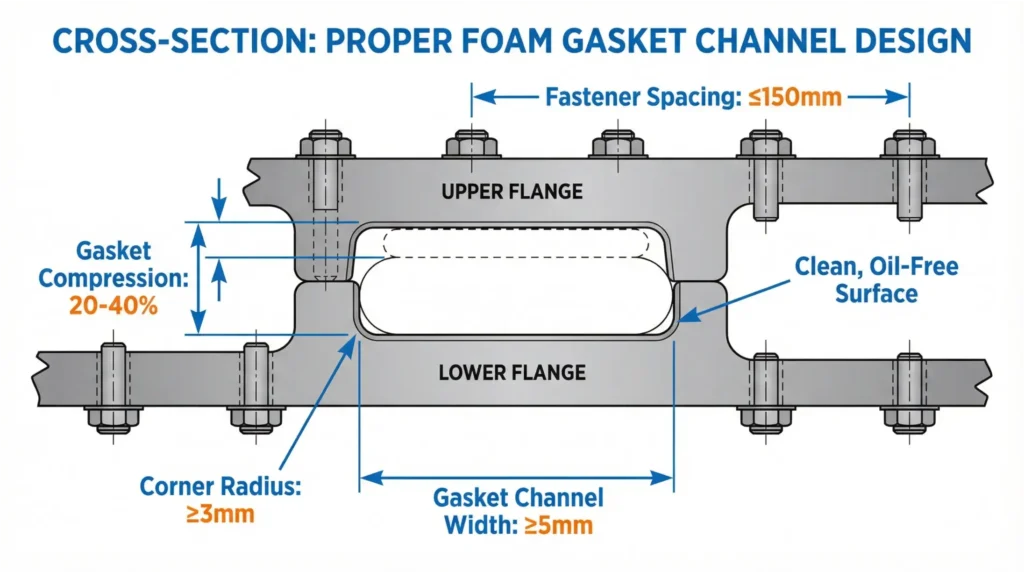 | Compression Design | Design for 20–40% gasket compression | Under-compression = leaks; over-compression = failure |