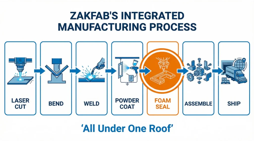 Traditionally, sourcing sealed sheet metal parts meant managing a complex supply chain: a fabricator, a separate gasket manufacturer, and an assembler. Each handoff adds cost, lead time, and risk.