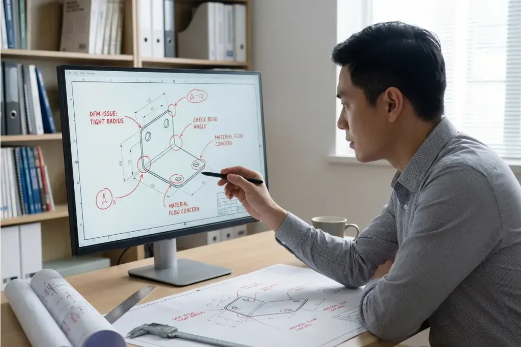 Our engineers review your part design and flag potential tooling challenges, draft angles, material flow, minimum radii, all before any steel is cut. Free for every project.