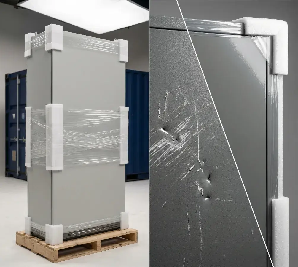 Depending on the material and finish, we apply PE protective film, VCI anti-corrosion bags, rust-inhibiting paper, foam wrapping, or interleaving sheets to prevent surface contact damage.
