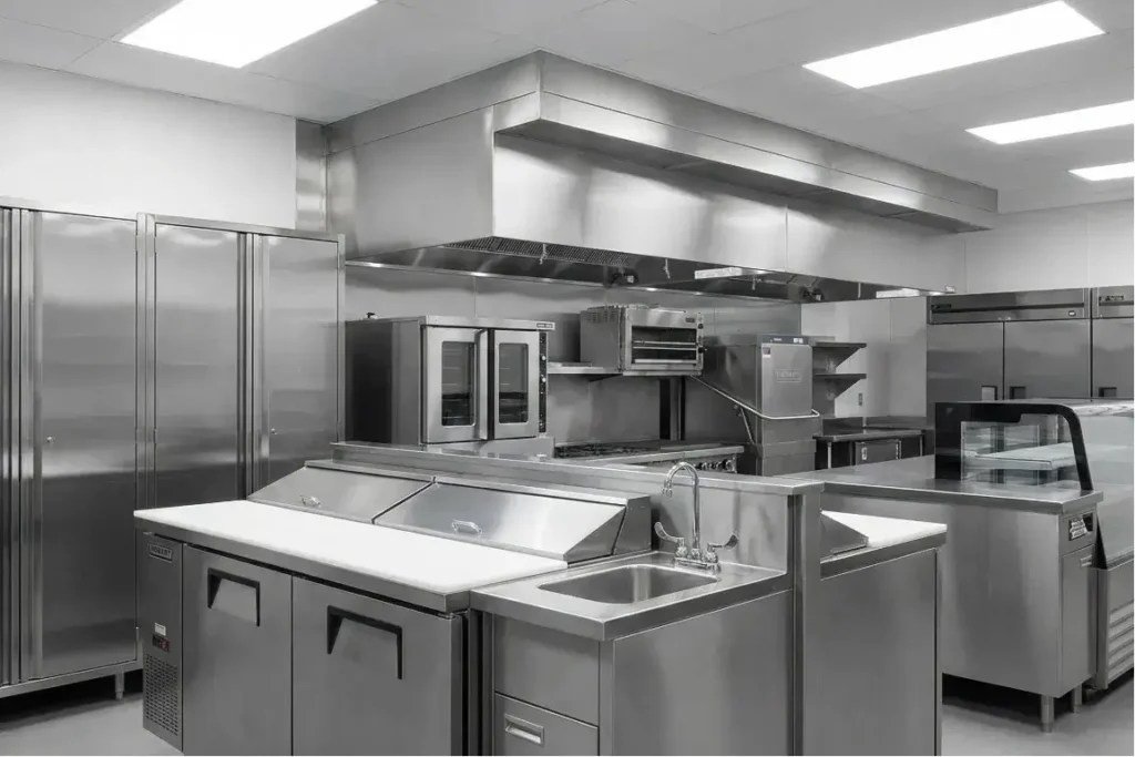Commercial kitchen storage, food prep stations, compatible stainless steel cabinets, food processing equipment housings and restaurant cabinets in food-grade stainless steel.