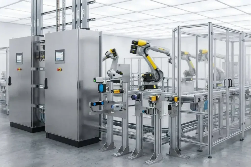 Robot control cabinets, sensor housings, custom brackets, control panel enclosures and machine safety enclosures for automated manufacturing.