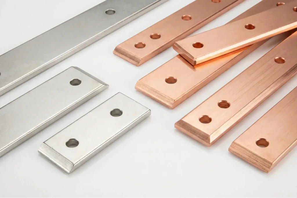 High-conductivity stamped and machined busbars for power distribution and EV systems